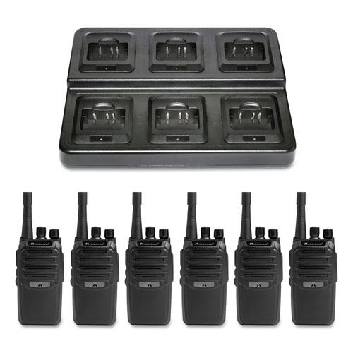 Keep your business's communication organized and at the ready. The BR200X6BGC Bundle features six of Midland's BR200 Business Radios along with a six-radio capacity gang charger that easily houses and recharges up to six radios at once. Indicator lights on the gang charger show when radios are fully charged and ready for use.